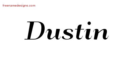 This free name graphic with art deco lettering is printed with the custom name Dustin.