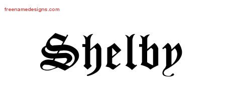 Print this graphic Shelby – Print out this black-letter name tattoo design.