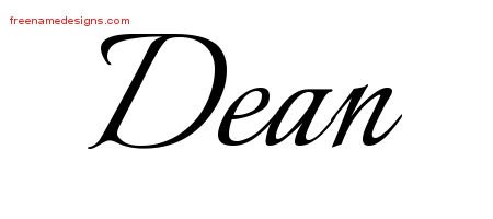 This free name graphic with calligraphic lettering is printed with the custom name Dean.