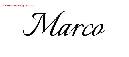This free name graphic with calligraphic lettering is printed with the custom name Marco.