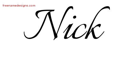 This free name graphic with calligraphic lettering is printed with the custom name Nick.