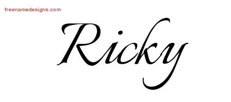 This free name graphic with calligraphic lettering is printed with the custom name Ricky.