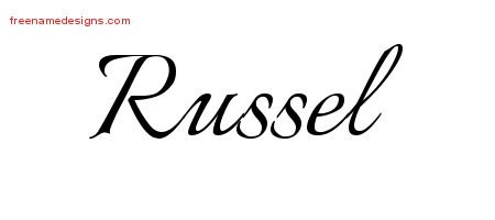 This free name graphic with calligraphic lettering is printed with the custom name Russel.