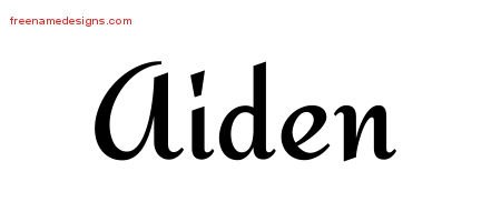 This free name graphic with calligraphic stylish lettering is printed with the custom name Aiden.