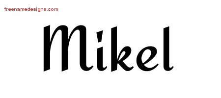 This free name graphic with calligraphic stylish lettering is printed with the custom name Mikel.