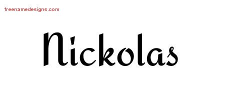 This free name graphic with calligraphic stylish lettering is printed with the custom name Nickolas.