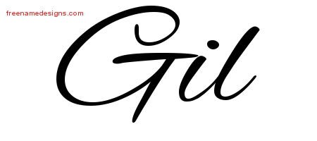 This free name graphic with cursive lettering is printed with the custom name Gil.