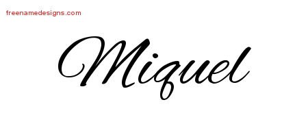 This free name graphic with cursive lettering is printed with the custom name Miquel.