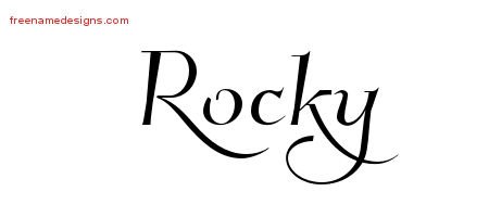 This free name graphic with elegant lettering is printed with the custom name Rocky.
