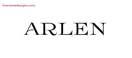 This free name graphic with flourishes lettering is printed with the custom name Arlen.