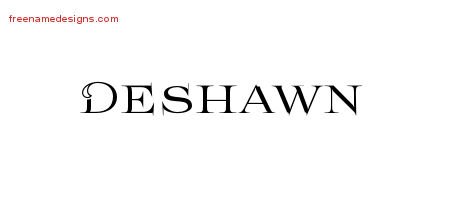 This free name graphic with flourishes lettering is printed with the custom name Deshawn.