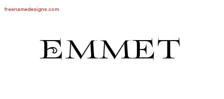 This free name graphic with flourishes lettering is printed with the custom name Emmet.