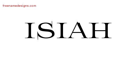 This free name graphic with flourishes lettering is printed with the custom name Isiah.