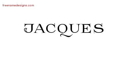 This free name graphic with flourishes lettering is printed with the custom name Jacques.