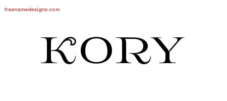 This free name graphic with flourishes lettering is printed with the custom name Kory.