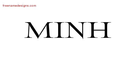 This free name graphic with flourishes lettering is printed with the custom name Minh.