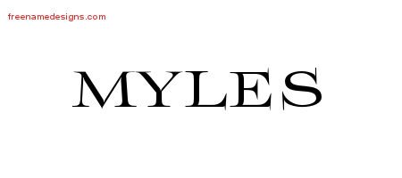This free name graphic with flourishes lettering is printed with the custom name Myles.