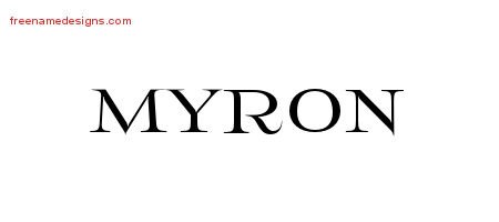 This free name graphic with flourishes lettering is printed with the custom name Myron.