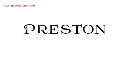This free name graphic with flourishes lettering is printed with the custom name Preston.