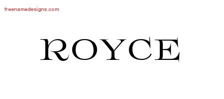 This free name graphic with flourishes lettering is printed with the custom name Royce.