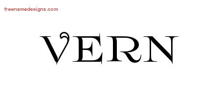 This free name graphic with flourishes lettering is printed with the custom name Vern.