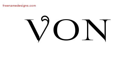 Print image Von – Print out this flourishes name tattoo design.