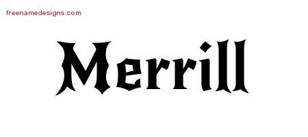 This free name graphic with gothic lettering is printed with the custom name Merrill.