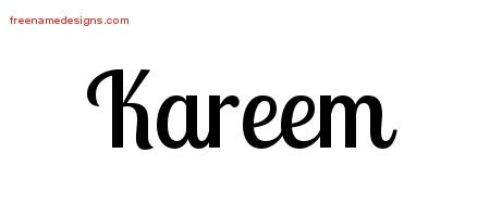 This free name graphic with handwritten lettering is printed with the custom name Kareem.