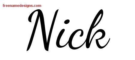 This free name graphic with lively script lettering is printed with the custom name Nick.