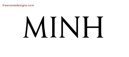 This free name graphic with regal victorian lettering is printed with the custom name Minh.