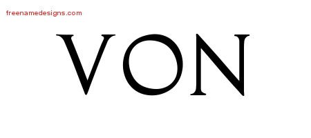 This free name graphic with regal victorian lettering is printed with the custom name Von.