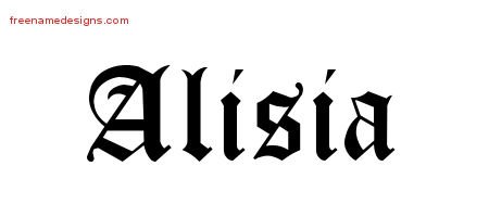 This free name graphic with blackletter lettering is printed with the custom name Alisia.