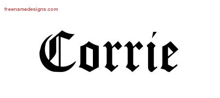 Print graphic Corrie – Print out this black-letter name tattoo design.