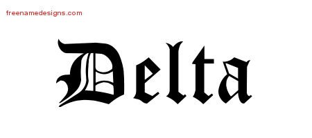 This free name graphic with blackletter lettering is printed with the custom name Delta.