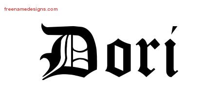 This free name graphic with blackletter lettering is printed with the custom name Dori.