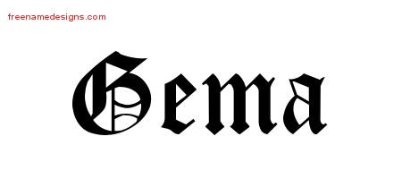This free name graphic with blackletter lettering is printed with the custom name Gema.