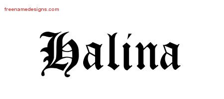 This free name graphic with blackletter lettering is printed with the custom name Halina.