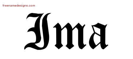 This free name graphic with blackletter lettering is printed with the custom name Ima.