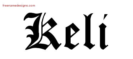 This free name graphic with blackletter lettering is printed with the custom name Keli.