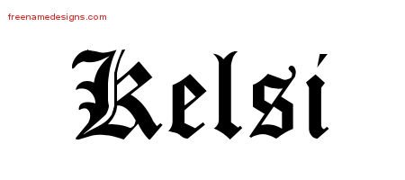 This free name graphic with blackletter lettering is printed with the custom name Kelsi.