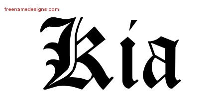 This free name graphic with blackletter lettering is printed with the custom name Kia.