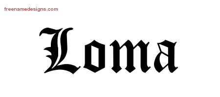This free name graphic with blackletter lettering is printed with the custom name Loma.