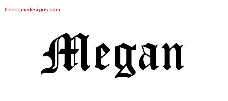 This free name graphic with blackletter lettering is printed with the custom name Megan.