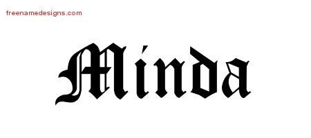 This free name graphic with blackletter lettering is printed with the custom name Minda.