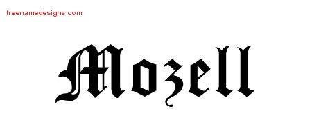 This free name graphic with blackletter lettering is printed with the custom name Mozell.