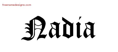 This free name graphic with blackletter lettering is printed with the custom name Nadia.