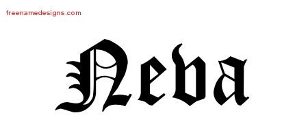 This free name graphic with blackletter lettering is printed with the custom name Neva.
