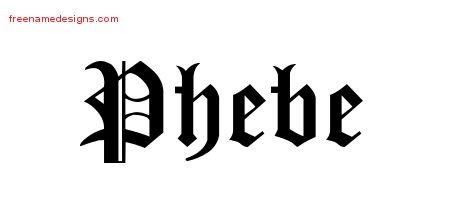 This free name graphic with blackletter lettering is printed with the custom name Phebe.