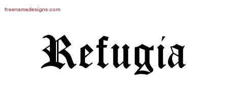 This free name graphic with blackletter lettering is printed with the custom name Refugia.