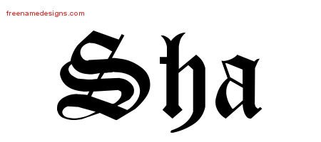 This free name graphic with blackletter lettering is printed with the custom name Sha.